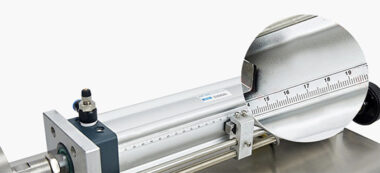 Máy chiết rót định lượng theo nguyên lý áp lực của xi-lanh và pít-tông với van 3 chiều kiểm soát dòng chảy dung dịch và công tắc từ tính điều khiển hành trình xi-lanh giúp điều chỉnh thể tích chiết rót chính xác.