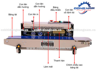 Máy ép miệng túi tự động có in date có cấu tạo gồm 4 bộ phận chính như sau: