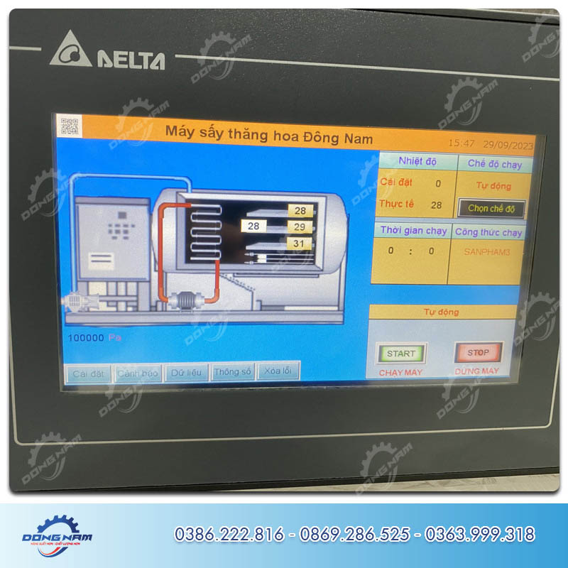 - Kỹ thuật Đông Nam Lập trình PLC toàn bộ các quy trình sấy tự động với màn hình cảm ứng công nghiệp.